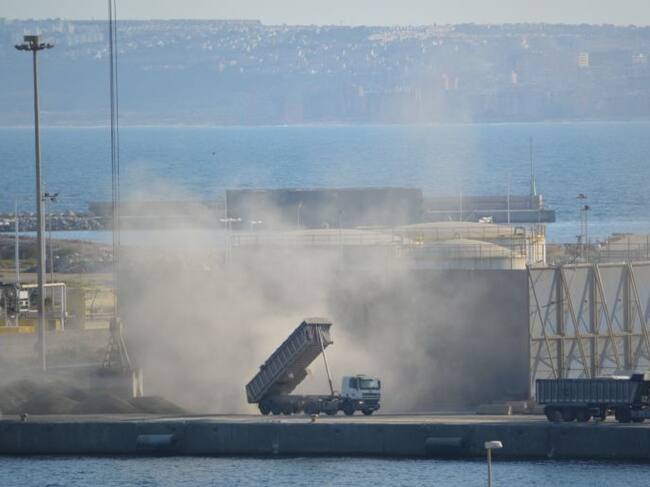Imagen del instante en el cual un camión descarga en el puerto el granel / Cadena Ser