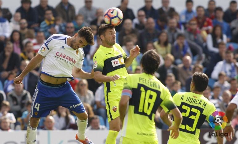 La plantilla que dirige Luis Milla -al menos todavía- comenzó el encuentro con intensidad y generando ocasiones de peligro. El gol estuvo más cerca de la portería visitante que de la defendida por Xavi Irureta, pero una jugada rápida del Elche supuso el primer palo para el cuadro local. El ex-zaragocista Pedro Sánchez metió un pase en profundidad al área que Nino recibió para dar un pase de la muerte a Pelayo, el primer goleador del encuentro.