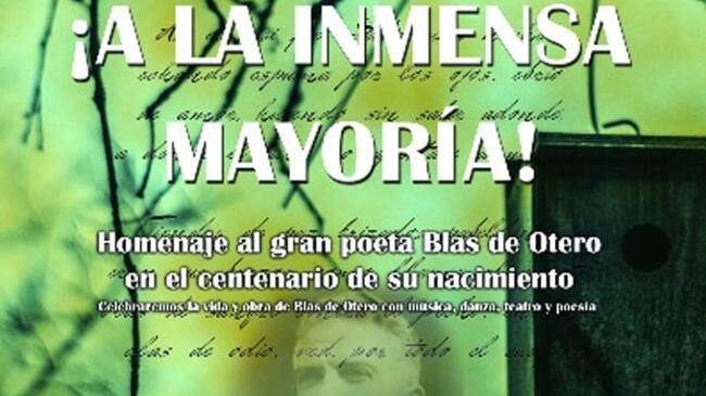 ‘A la inmensa mayoría’ es nombre del homenaje a la figura de Blas de Otero, que reunirá a representantes de las letras como Antonio Hernández, Fany Rubio o Manuel López Azorín, que recitarán sus poemas más emblemáticos. Tampoco faltará la música a cargo del coro Música Tuya y los poemas interpretados por los cantautores Matías Ávalos y Luis Felipe Barrio, junto a la danza de Yolanda Gaviño, primera bailarina del Ballet de Antonio Gades. Asimismo, la Compañía de Teatro Blas de Otero protagonizará una dramatización de sus versos.