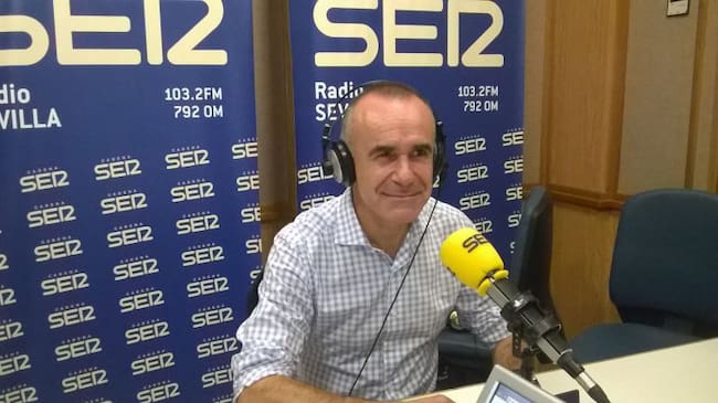 El delegado municipal de Habitat Urbano, Antonio Muñoz, en el estudio de Radio Sevilla para hablar de la aplicación de la nueva normativa de veladores / Mar Badía