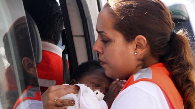 Bebe rescatado de una de las pateras. / A. Carrasco Ragel (EFE)