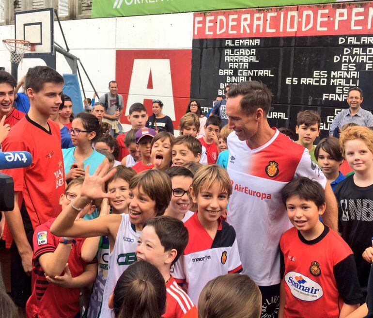 En las inmediaciones del estadio se ha preparado una pista de street basket y ahí Nash ha jugado varios partidos de tres contra tres con algunos jovenes aficionados del Real Mallorca. La única condición para poder compartir pista con Nash era acudir al lugar vestido con alguna camiseta del Mallorca al igual que él se ha enfundado la elástica blanca del Mallorca.