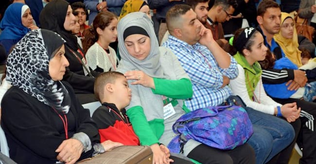 Un grupo de 75 refugiados sirios llega al aeropuerto de Fiumicino (Roma, Italia) desde Beirut (el Líbano) el 24 de octubre de 2016, como parte del proyecto "corredores humanitarios" auspiciado por el gobierno italiano y varias comunidades cristianas. Este(EFE)
