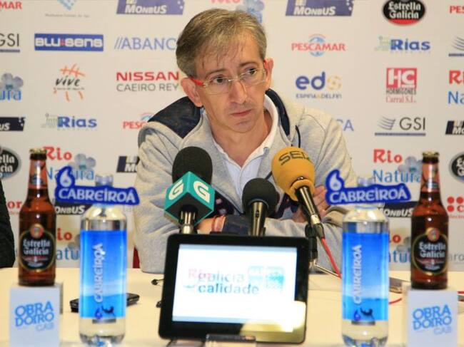 Moncho Fernández, técnico del Obradoiro, en la rueda de prensa previa al partido ante el Betis-E Plus / Obradoiro CAB