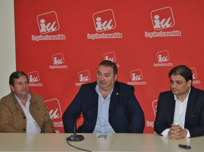 El nuevo Coordinador general de IU de Asturias, Ramón Argüelles, en el centro, acompañador por Fernando Díaz Rañón (izquierda) y Alejandro Suárez (drcha.) / IU Asturias