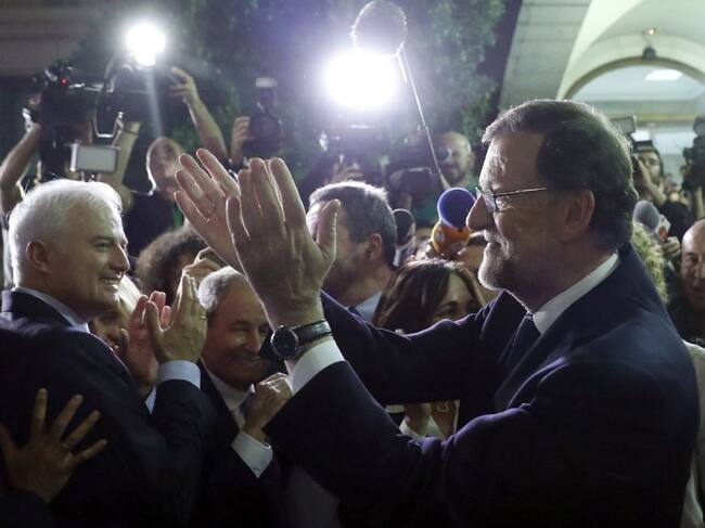 El presidente Mariano Rajoy y junto a él, el diputado popular aragonés Eloy Suárez / Chema Moya (EFE)
