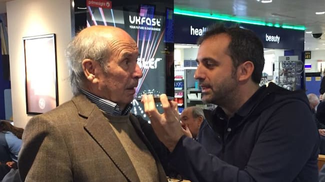 Lluís Flaquer entrevista Valentí Guardiola, pare de l'entrenador del City, a l'aeroport de Manchester / Cadena SER