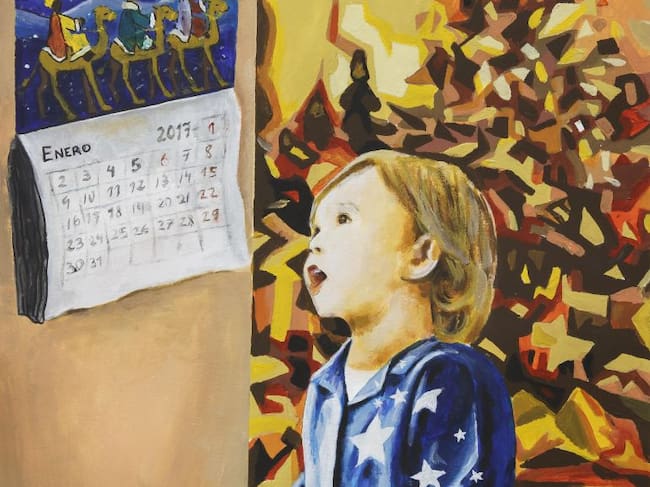 Representa la escena de un día de Navidad, en el que un niño mira impaciente los días que faltan para la llegada de los Reyes Magos y poder descubrir si se han cumplido sus deseos. Se produce en un hogar cualquiera sin especificar, simplemente cualquier casa donde se celebra la Navidad.