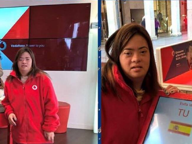 María inicia sus prácticas en un establecimiento de Vodafone en Palencia / Asdopa