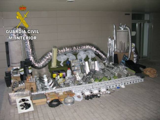 La otra estaba en la urbanización Las Castillas de Torrejón del Rey, donde había 58 transformadores, 56 proyectores reflectantes, 60 bombillas halógenas, ventiladores y todo tipo de instrumentos para facilitar y potenciar el crecimiento de las plantas. Además se encontraron 476 macetas con tierra y restos de planta de marihuana que habían sido cortadas con anterioridad a la llegada de los agentes.