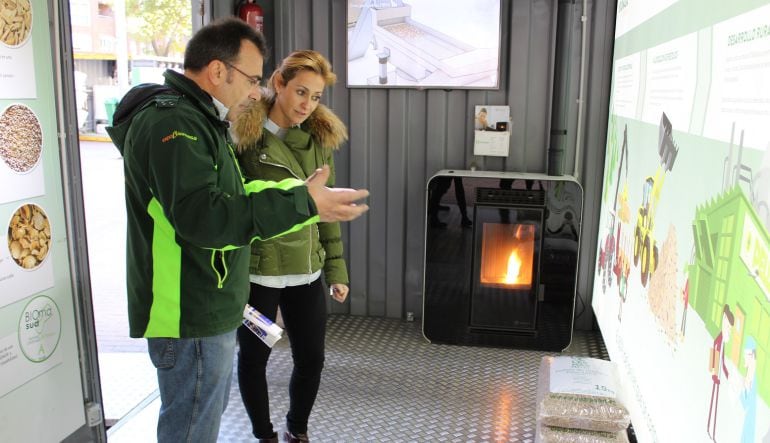 La concejal de Medio Ambiente del Ayuntamiento de Albacete, Rosa González de la Aleja, ha visitado este jueves la exposición itinerante ‘Biomasa en tu casa’ sobre el uso de la biomasa en calefacciones que se ha instalado en el Paseo de la Feria de la capital.