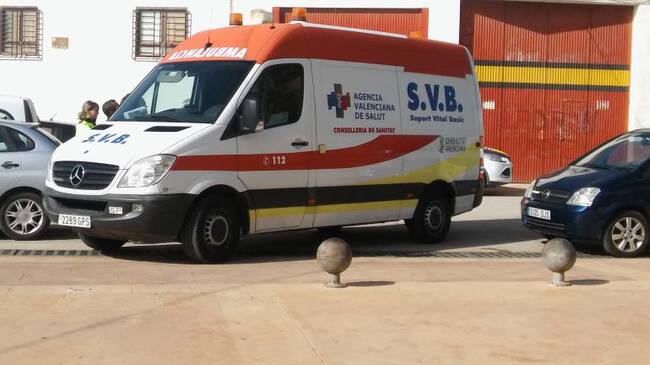 La ambulancia que ha atendido al conserje herido en la Ciudad Deportiva de Sax / Cadena Ser
