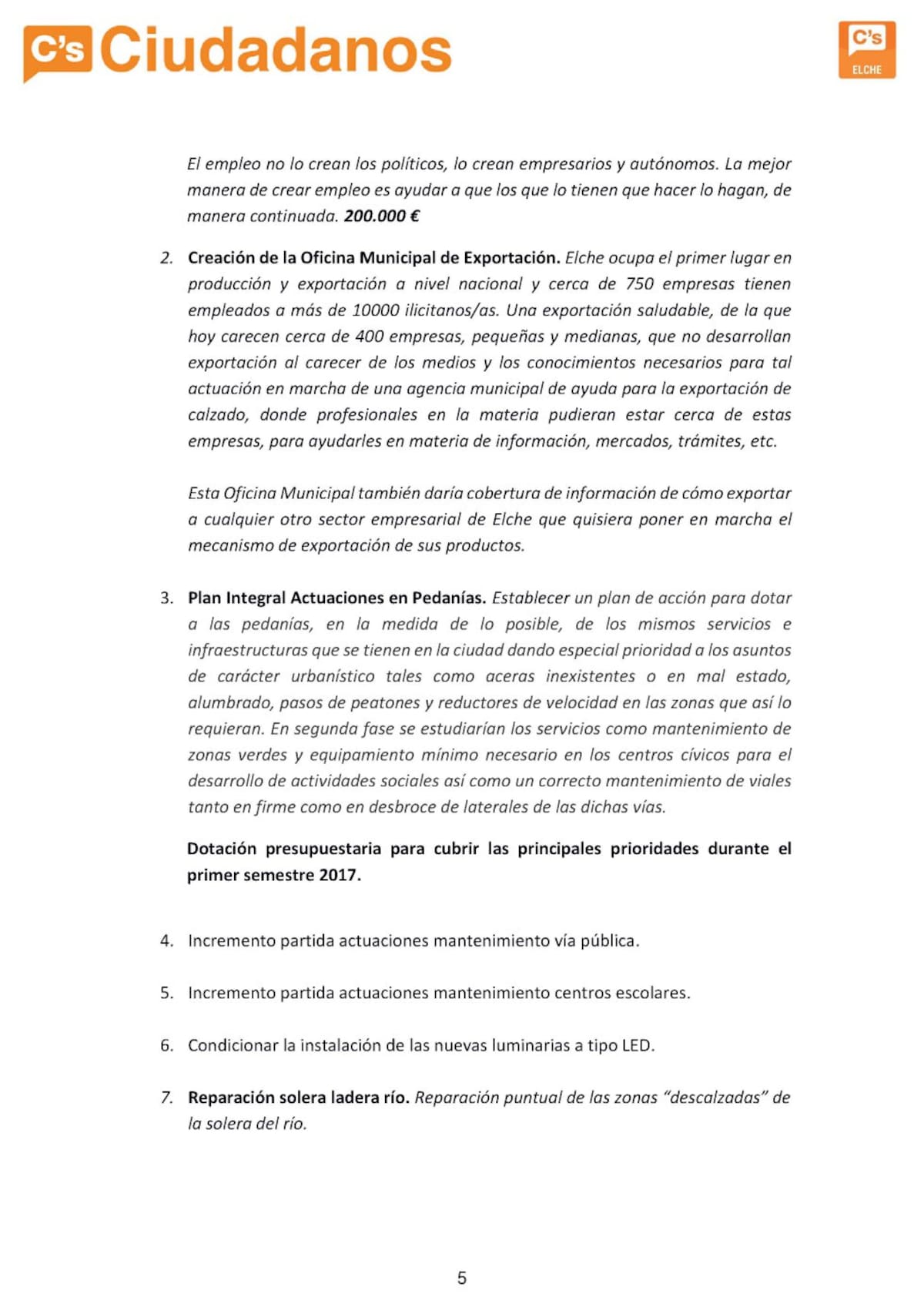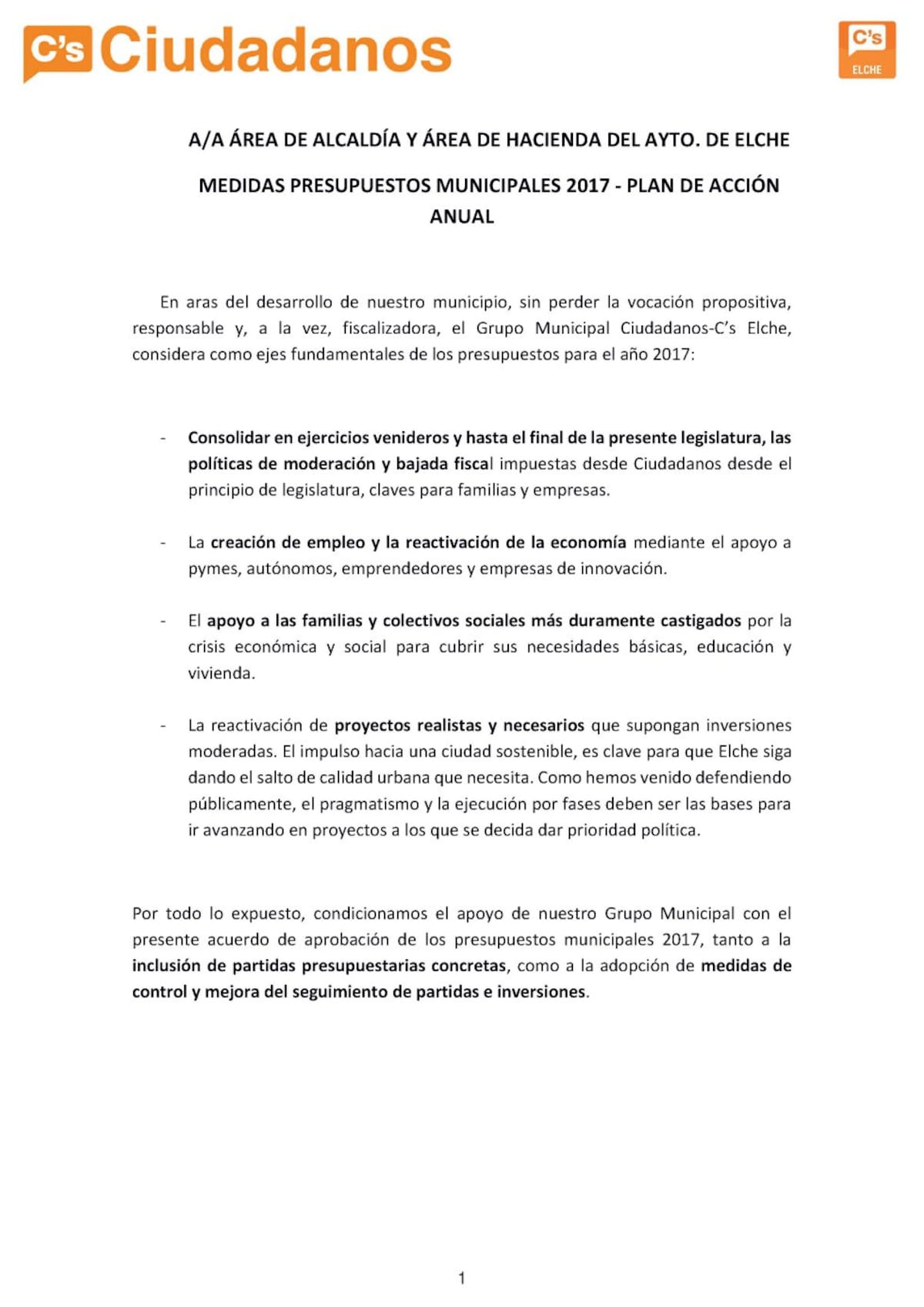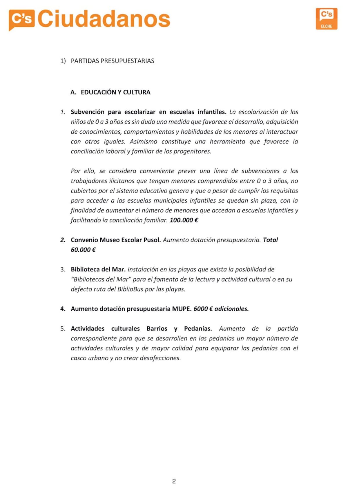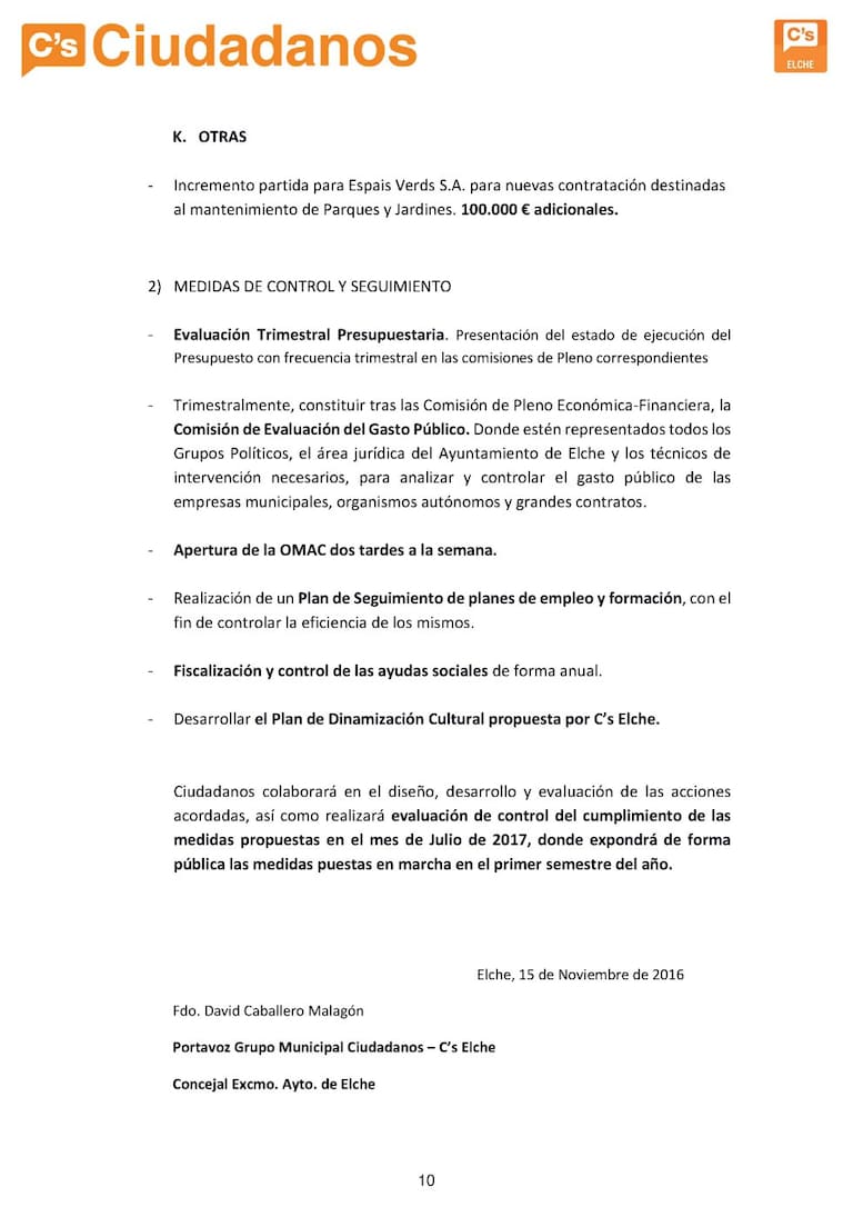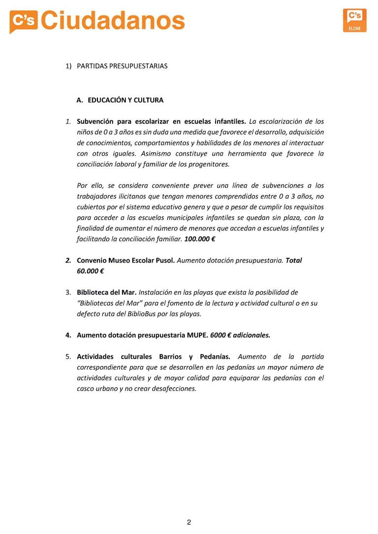 Ciudadanos presenta 70 propuestas para los presupuestos
