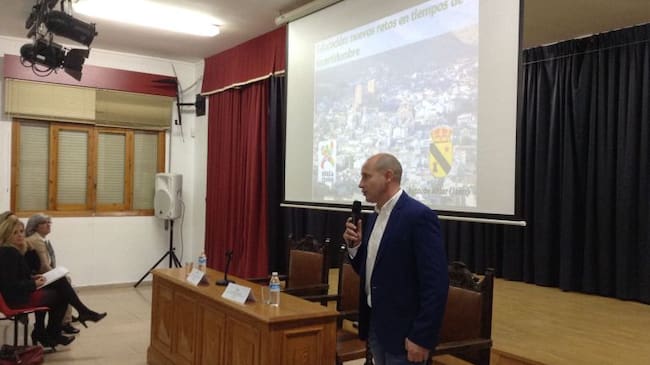 El alcalde de Jódar, José Luis Hidalgo, presenta en Viator (Almería), las actuaciones que han hecho al municipio merecedor del reconocimiento ‘Educaciudad’.