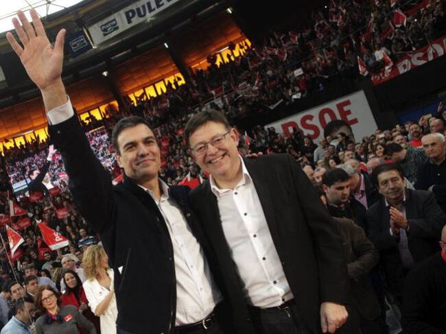 Imagen de archivo del ex secretario general del PSOE Pedro Sachez y el secretario general del PSPV Ximo Puig / Cadena SER
