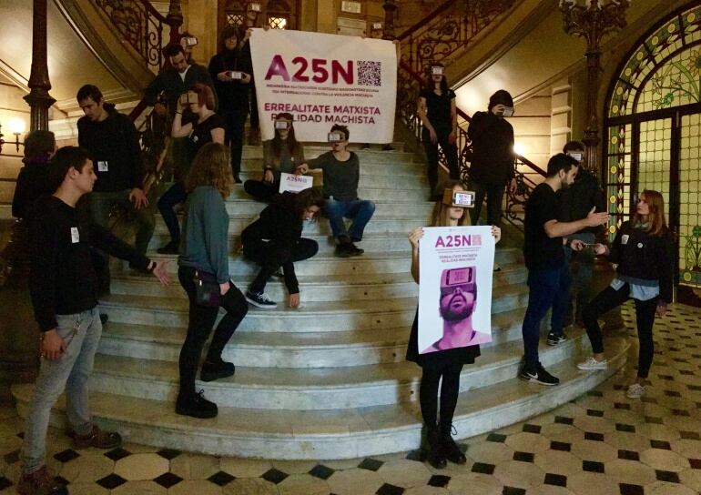 Precisamente para concienciar a la sociedad, y concretamente a los jóvenes entre 15 y 26 años, este año los estudiantes del Instituto de Usandizaga han diseñado la campaña en la que han presentado las gafas para ver la realidad machista. Unas gafas de realidad virtual que presentan escenas de micromachismo que generalmente se suelen pasar por alto, pero que en realidad tienen un alto porcentaje de machismo.