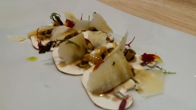 Hongos crudos en ensalada con lascas de parmesano