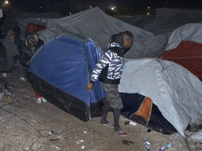 YAN10 LESBOS (GRECIA). Refugiados y migrantes trasladan sus tiendas de campaña durante un incendio en el campamento de refugiados en Lesbos (Grecia) hoy, 25 de noviembre de 2016. Una iraquí de 60 años y su nieto de 6 años murieron y otras dos personas res / STR (EFE)