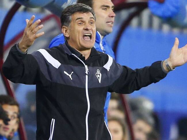 Mendilibar da instrucciones en el último partido de liga en Ipurua / JUAN HERRERO (EFE)