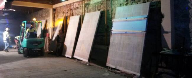 El mural se ha dividido en siete piezas que serán trasladadas a la Oficina principal de Abanca.