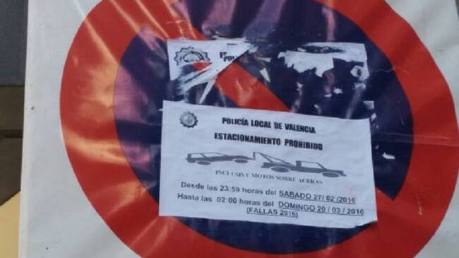 Señal de estacionamiento prohibido de la Policia Local de Valencia / CADENA SER