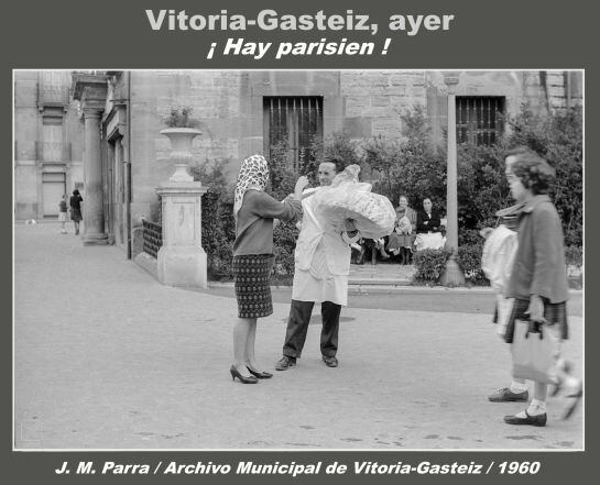 En la imagen que va a continuación podemos ver en 1960 a uno de estos vendedores ofreciendo el parisien, junto al edificio ya desaparecido del Casino Artista Vitoriano, que daba a tres vías urbanas: San Antonio, Plaza del General Loma y Paseo de La Florida.