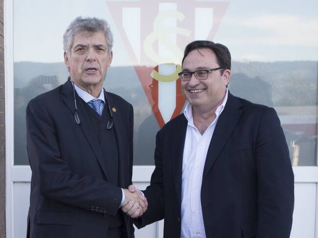 El presidente de la Federación Española de Fútbol visitó Mareo y acompañó a Maximino Martínez en la toma de posesión como presidente de la territorial asturiana