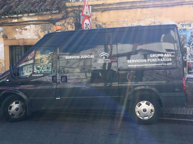 Furgón Funerario ante la casa en ruínas donde se ha producido la muerte / Radio Algeciras