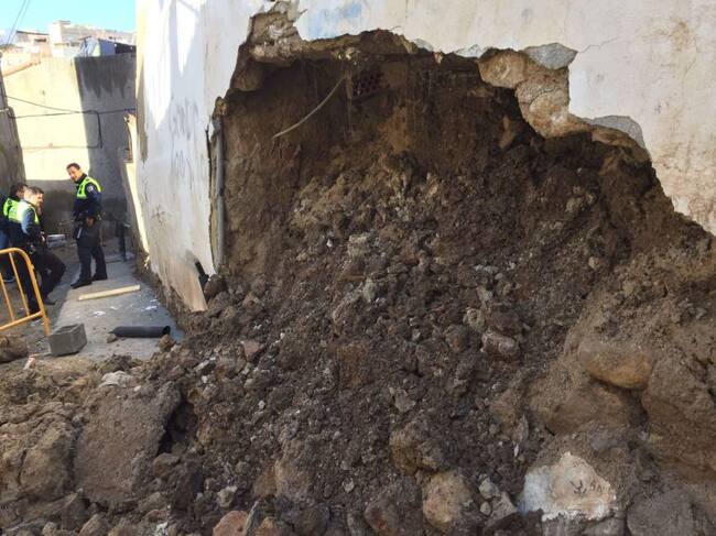 El derrumbe del muro de la vivienda, del barrio de San Cristóbal, se encuentra en una zona de viviendas viejas muy afectada por los seísmos de 2011