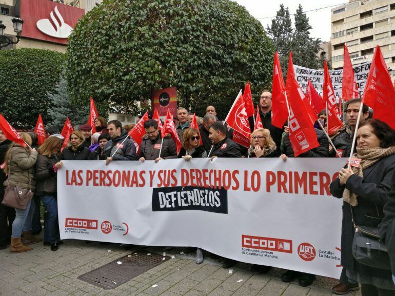 La concentración ha sido este jueves en la Plaza del Altozano convocada por los sindicatos UGT y Comisiones Obreras