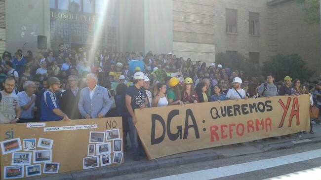 Imagen de una de las concentraciones reclamando la reforma del edificio / CADENA SER ARAGON