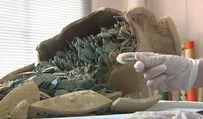 La muestra incluirá hasta principios de enero, cuando serán retiradas para su estudio, cuatro ánforas de las que contenían las monedas y que aún permanecen selladas.