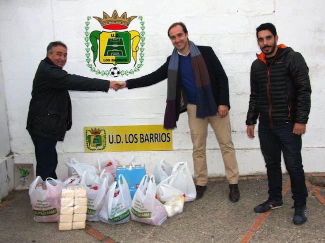 Álvaro Moya durante una entrega de alimentos. / UD Los Barrios