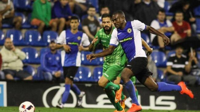 Los jugadores del Hércules Franck Omgba y Jesús Berrocal son los principales candidatos para abandonar el club durante este mercado de invierno.