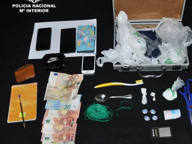En el registro que llevaron a cabo los agentes, le intervinieron 33 gramos de cocaína, así como efectos relacionados con la venta de la droga, báscula de precisión digital, anotaciones de la actividad, entre otros enseres que se encontraban en un maletín metálico en la ventana de la cocina y que intentó hacer desaparecer, durante el registro policial.