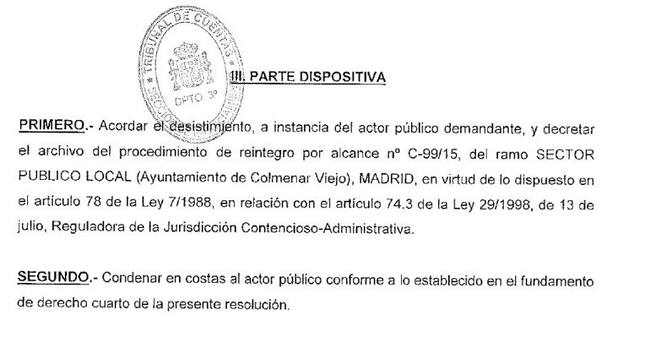 Parte de la setencia que archiva la denuncia sobre CESPA en Colmenar Viejo / PP Colmenar Viejo