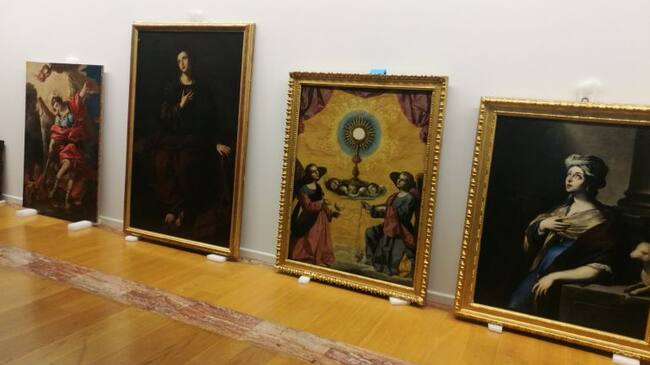 Alrededor de medio centenar de obras se van a incorporar o intercambiar en la exposición. Entre ellas destacan, por ejemplo, los dos Evangelistas de Hernández Amores; ‘La Sagrada Familia’ y la ‘Matrona del Almudí’, de Pedro Flores (ubicados hasta ahora en el Palacio de San Esteban); ‘La merienda campestre’, de Inocencio Medina; ‘La Virgen con el niño’ y ‘San Juanito’, de Barocci; y ‘El festín de Baltasar’, una obra anónima del siglo XVII que ha sido restaurada recientemente en el Centro de Restauración de la Región de Murcia.