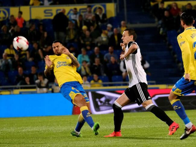 El Valencia merece mejor premio en Gran Canaria, pero consigue un buen resultado para el partido de vuelta en Mestalla del próximo martes. Diez minutos antes del descanso, Calleri adelanta al equipo de Paco Jémez aprovechando un buen servicio de Borja Herrera desde la banda izquierda. Parejo entra en la segunda parte por Kondogbia. Otro de los cambios de Rubén Uría, Rodrigo, consigue el empate tras una jugada de tiralíneas con la firma de Guedes y Lato. Si Zaza no perdona en dos ocasiones ante Chichizola, la eliminatoria estaría sentenciada.