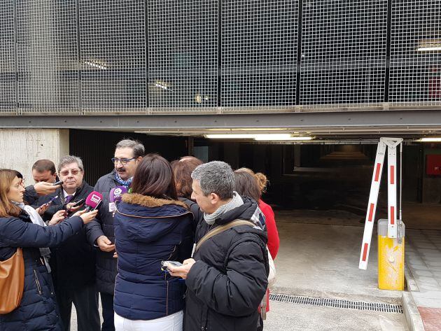 Comparecencia del consejero de sanida en la entrada del aparcamiento/Foto SER GU