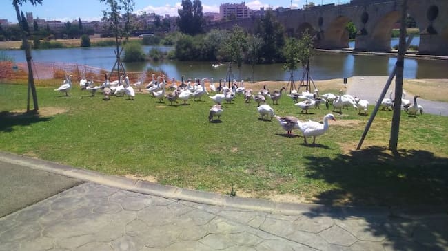 Centenares de gansos pueblan ambas márgenes del Guadiana, la zona ZEPA, el parque y hasta el azud del río.