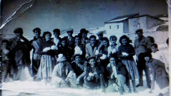Histórica fotografía de jerezanos posando con bolas de nieve tras la nevada de 1954 / Cadena SER