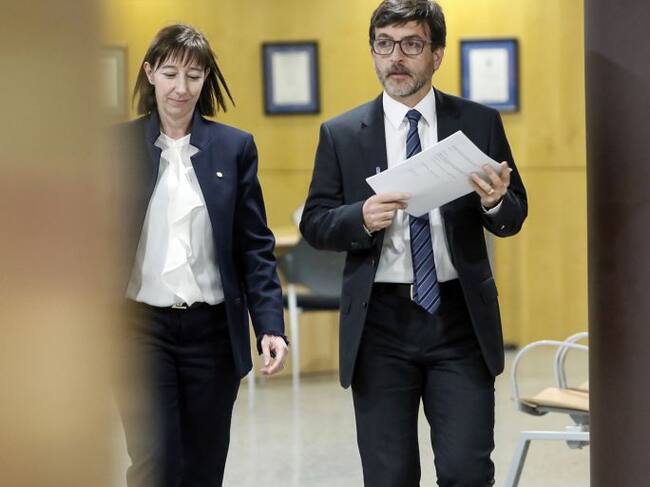 La ministra de la Funció Pública, Eva Descarrega, i el ministre de Finances i portaveu de Govern, Jordi Cinca, abans d'entrar a la sal de premsa de Govern / SFGA/CEsteve