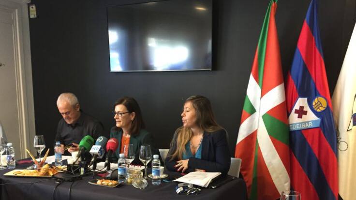 Amaia Gorostiza, presidenta del Eibar, anuncia en un desayuno informativo en Ipurua que será entonces cuando se convoque la junta extraordinaria para que los accionistas elijan su ubicación