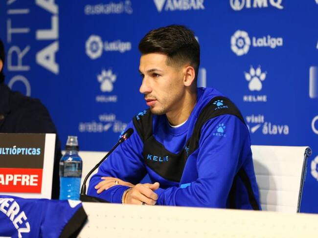 Hernán Pérez en su presentación como nuevo jugador albiazul. / Alavés.com