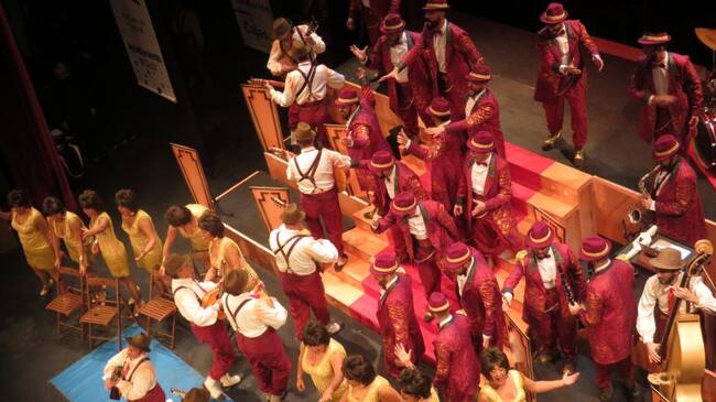 El coro de Luis Rivero presenta un gran musical sobre el escenario del Falla, el que ultima una compañía de teatro. Ellos con traje y sombrero. Ellas, con vestido dorado. Primer tango a Antonio Guerrero 'Piojo', fallecido el pasado año, protector de la cantera y niño de Radio Cádiz. No termina de emocionar. Segundo, algo más flojo, a la polémica de la fecha fija del Carnaval. El tango está muy bien cantado, tiene un silencio que funciona aunque, sobre todo, en el segundo hay momentos en los que se pierde la letra. Cuplés al peso del primer premio y a la gripe. En el estribillo hacen referencia a chirigotas, comparsas y tango, que les hacen vivir, soñar y cantar. Lo mejor del repertorio resulta ser el popurrí con grandes momentos como la alegría o la interpretción de Míriam Ballesteros. Pero no tiene la espectacularidad del año pasado. PUNTUACIÓN DEL JURADO DE RADIO CÁDIZ: 6,19
