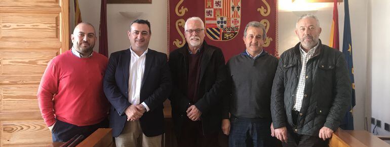 Ayer en Abanilla se produjo, en el Ayuntamiento, una de las primeras reuniones para que todo salga conforme. En la foto, de izquierda a derecha: Luis Maria Rocamora Marco (Presidente de la Federación de Moros y Cristianos de Abanilla), Domingo Camacho (Director de la Cadena SER en la Región de Murcia y embajador de las fiestas de este año), Ezequiel Alonso (Alcalde del municipio), José Antonio Rocamora Ramírez (Concejal de Festejos) y el Presidente de la Hermandad de la Santísima Cruz.
