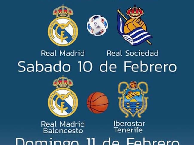 El sábado se disputará el choque entre Real Madrid y la Real Sociedad (horario aún por determinar por la Liga) y el domingo, a las seis y media de la tarde, tendrá lugar en el WiZink Center, Palacio de los Deportes de la Comunidad de Madrid, el partido entre el Real Madrid Baloncesto y el Iberostar Tenerife.