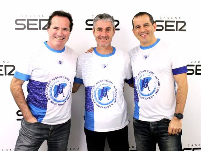 Martín Fiz (c) y José Manuel Albentosa (i) en Radio Alicante / Silvia Cárceles