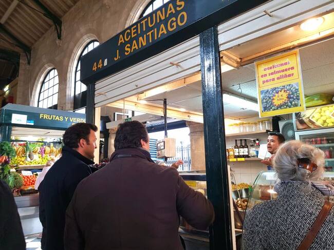 Carlos Pérez, portavoz de Ciudadanos Jerez, conversando con un vendedor de la Plaza de Abastos / Radio Jerez CADENA SER