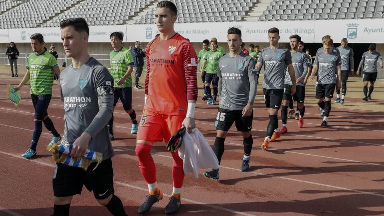 El técnico malaguista José González, alineó en la primera parte a Andrés Prieto; Iván, Ian Soler, Chica, Meléndez; Juanpi, Rolón, Kuzmanovic, 'Chory' Castro", Bueno y En-Nesyri. También jugaron Borja Bastón, Ignasi Miquel, Ideye, Roberto, Rosales, Luis Hernández, Recio, Iturra, Keko, Samu y Adrián.